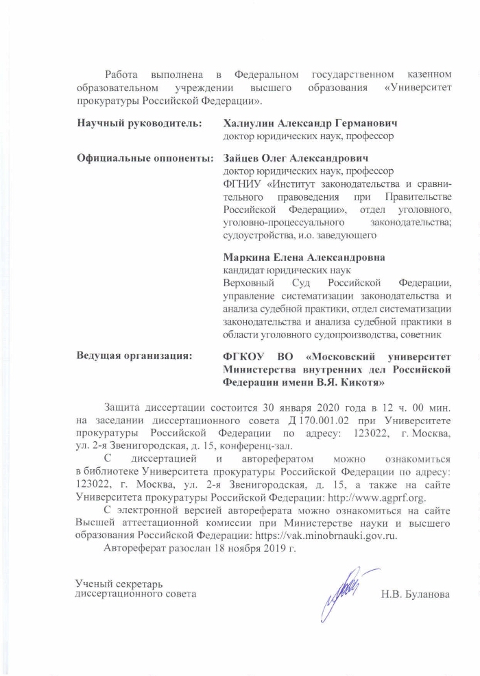 Участие прокурора в рассмотрении судом вопросов о прекращении уголовного дела (уголовного преследования) : автореферат дис. на соиск. уч. степ. кандидата юридических наук : специальность / Гаврилова Марина Николаевна ; [Место защиты: Университет прокуратуры Российской Федерации]. - Москва, 2019. -37 с. ; 21. - Библиогр.: с.35-37 (7 назв.).