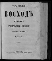 Книжки Восхода : Журн. учено-лит. и полит. - Санкт-Петербург, 1881-1906. - Заглавия: 1881-1899 Кн. 10 Восход; 1899 Кн. 11 - 1906 Книжки Восхода.