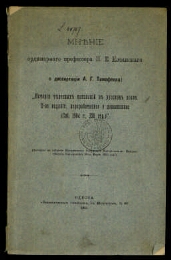 Мнение ординарного профессора П.Е. Казанского о диссертации А.Г. Тимофеева: "История телесных наказаний в русском праве. 2-ое издание, переработанное и дополненное (СПб. 1904 г., 320 с.)" : (Доложено в собр. Юрид. фак. Имп. Новорос. ун-та 26-го марта 1905 г.). - Одесса : "Экономическая" тип., 1905. -[3], 58 с.. - Библиогр. в тексте и подстроч. примеч.. - Экз. деф.: с. 55-58 перепутаны местами.