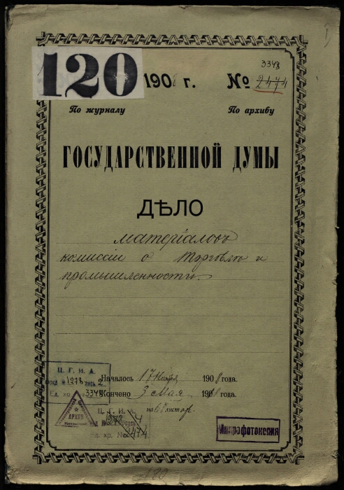 | Заголовок | Материалы Комиссии о торговле и промышленности о развитии торговых отношений России с Персией, об изменении узаконений по пробирной части, упорядочении дела клеймения коромысел |