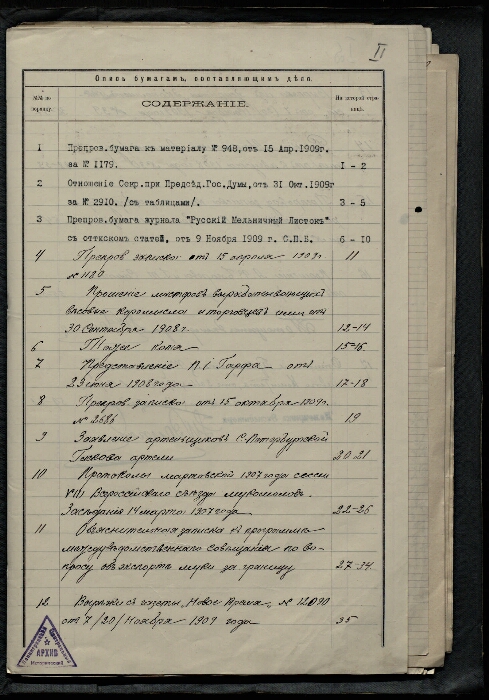 | Описи | Государственная Дума III Созыв. Дела по законопроектам ведомств, законодательным предложениям и запросам членов Государственной Думы, дела комиссий, прошения и жалобы крестьянских обществ и частных лиц |