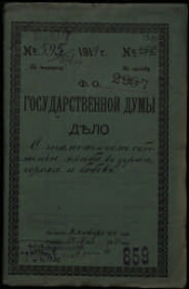 Дело по законопроекту Министерства торговли и промышленности, внесенному в Государственную думу Четвертого созыва, об обложении таможенными пошлинами ввозимых из-за границы зерна, гороха и бобов [Дело] : 9 января - 23 мая 1914 г. - 1914. -43 л. ; 36,5x26 см. - (Фонд Государственная дума I, II, III и IV созывов. Опись № 6). - Ориг. заголовок дела: Дело о таможенном обложении хлеба в зерне, гороха и бобов. 9 января 1914 г. - 23 мая 1914 г.