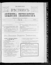 Вестник Общества технологов : ежемесячный технический журнал. - 1894 Т. 1, № 1 - 1914 Т. 21, № 24. -Санкт-Петербург, 1894-1914. - Подзаголовки: 1907-1914 Технический журнал, изданный Обществом технологов в Петербурге. Журнал "Вестник общества технологов" выходил в Санкт-Петербурге с 1894 по 1914 год и имел подзаголовок "Ежемесячный технический журнал". В 1915 году путем слияния с "Бюллетенями Политехнического Общества" издание преобразовалось в научно-технический журнал "Вестник инженеров", издателями которого были Общество технологов в Петрограде и Политехническое общество в Москве, и с 1918 года он начал издаваться уже в Москве. В 1930 году этот толстый энциклопедического формата журнал, являвшийся научно-техническим органом ВМБИТ ВЦСПС и ВСНИТО, ждало еще одно переименование - в "Вестник инженеров и техников", который выходил вплоть до 1959 г. С 1959 года взамен "Вестнику" в московском издательстве "Профиздат" начал издаваться новый журнал - "НТО СССР" ("Научно-технические общества СССР"), который был прикреплён к ВЦСПС. В 1973 году сменил название на "Техника и наука", под которым издавался до 1990 года, до очередной смены заголовка. С этого момента он стал называться "Инженер" и выходит под эгидой Российского Союза научных и инженерных общественных объединений