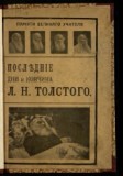 Последние дни и кончина Л.Н. Толстого : Памяти великого учителя. - Москва : Изд. книгоизд-ва "Космополит", 1910. -24 с. : ил., пл. ; 22 х 15,5 см. - В кн. вклеен типографский листок с рукописным текстом. Содерж.: Краткая биография. Последний бюллетень. Последние письма Л.Н. Толстого: 1) к студентам; 2) к священнику; 3) к единомышленнику Молочникову и др. "Труды и дни" Л.Н. Толстого. Толстой и его герои о смерти, [и др.].