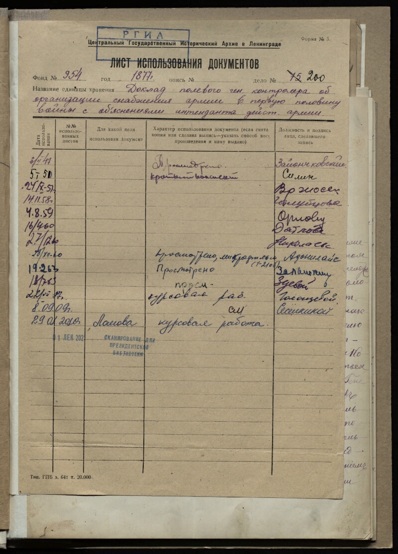 Заголовок Доклад полевого генерал-контролера об организации снабжения армии в первую половину 1877-1878 годов (копия) и письма интенданта действующей армии Ивана Аполлоновича Аренса М. П. фон Кауфману