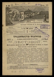Вестовой конторы и склада В.А. Березовского. - 1894-1918. -Санкт-Петербург, 1894-1918. - 25 х 17 см. - Изд-ва: 1894-1915 № 224 В. Березовский; 1915 № 225 - 1918 № 250 Т-во "В.А. Березовский". Загл.: 1894-1896 Вестовой конторы и склада В.А. Березовского; 1897-1917 Вестовой; 1918 Библиографический вестник т-ва "В.А. Березовский".