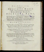 Forklaring, hvorledes det Specielle Kaart er aflagt, udgivet til Anviisning for Beliggenheden af Goodwin-Sands Flydende Fyhr, hvilket indbefatter den Engelfke Kyft fra Syd-Foreland til Margat, Downs of Margats Rehder, begge Indlobene til Queens- og South-Channels, eller Aabningen af de tvende Sydlige Indlob til Themfe-Floden, samt Syd-Enden af Grunden Falls m. m. : Tiligemed Beskrivelse, hvorledes Goodwins-Fyhr best bruges baade af Nord fra kommende, som ud fra Canalen Nord efter gaaende Skibe, med Maerkerne for Grundene samt Ankerpladserne m. m., uddraget af de Engelske Sailing-Directions, og med Anmaerkninger oplyste : Udgivet fra det Kongelige Soekaart-Archiv i December 1795. - Tredie oplag, hvori tilige findes en kort Efterretning om de Engelfke Fyhre i Canalen, med Oversaettelse af de i Engelland udkomne Befkrivelser over det seenere anlagde flydende Fyhr ved Owers, fom og over Longships Fyhr ved Lands-End, med tilhorende trende smaa Kaart paa eet Blad. Udgivet i october 1804. -Kiobenhavn : Trykt hos Directeur Johan Frederik Schultz, Kongelig og Universitetets Bogtrykker, [1804]. -28 с., 1 л. карт. ; 24,5 х 21,5 см. - Экз.: без обл.
