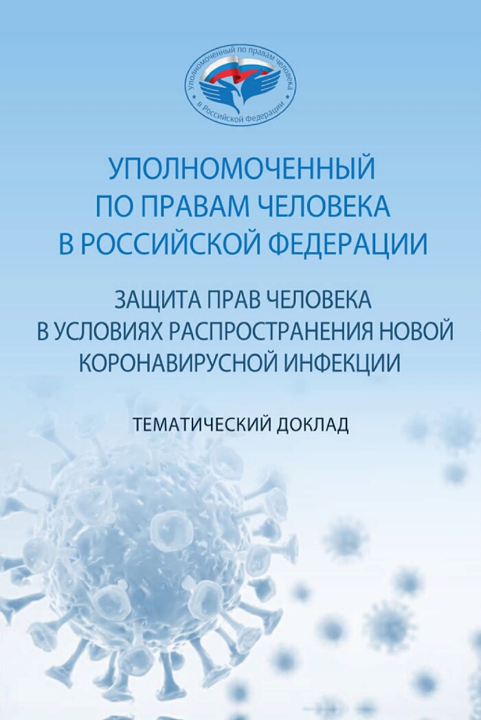 Защита прав человека в условиях распространения новой коронавирусной инфекции : тематический доклад / Уполномоченный по правам человека в Российской Федерации ; [вступительное слово: Москалькова Т. Н.]. - [Москва : Проспект, 2020]. -127, [1] с.. - Без титульного листа. Библиография в подстрочных примечаниях.