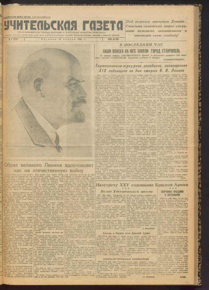 1943, № 4 (2976) (22 января). - 1943. -4 с.. -