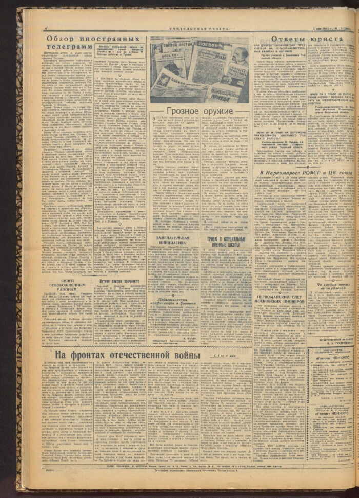 Учительская газета : орган Министерства просвещения СССР и Центрального комитета Профсоюза работников просвещения, высшей школы и научных учреждений. - 1924, № 1 (3 октября) -. -Москва, 1924-. - Заглавие: 1930, № 42 - 1936 "За коммунистическое просвещение", с октября 1937 вновь выходит под названием "Учительская газета". Подзаголовок: 1920-е гг. орган Центрального комитета Союза работников просвещения СССР ; 1930-е - 1940-е гг. орган министерств просвещения союзных республик и центральных комитетов профсоюзов работников начальной и средней школы, высшей школы и научно-исследовательских учреждений, политико-просветительных учреждений и дошкольных работников ; 1950-е гг. орган министерств просвещения союзных республик и центральных комитетов профсоюзов работников начальной и средней школы, высшей школы и научных учреждений, политико-просветительных учреждений ; орган министерств просвещения союзных республик и центральных комитетов профсоюзов работников просвещения ; 1960-е гг. орган Министерства просвещения РСФСР и Центрального комитета Профсоюза работников просвещения, высшей школы и научных учреждений СССР ; 1970-е - 1980-е гг. орган Министерства просвещения СССР и Центрального комитета Профсоюза работников просвещения, высшей школы и научных учреждений ; 2000-е гг. независимое педагогические издание. С 2010 г. с тематическими приложениями-вкладками к отдельным выпускам. В 1924-1991 гг. выходила 3 раза в неделю, с 1992 г. - 1 раз в неделю. - Выходит с 3 октября 1924 г. Основана в 1924 г. при участии Н. К. Крупской. Первый номер вышел 3 октября 1924 г. Издавалась в Москве как орган Министерства просвещения СССР и Центрального комитета Профсоюза работников просвещения, высшей школы и научных учреждений. С 1930 (№ 42) по 1936 гг. называлась "За коммунистическое просвещение", с октября 1937 г. вновь выходит под прежним названием. Периодичность: 3 раза в неделю. Кроме центральной газеты в союзных республиках также издавались газеты на национальных языках. В 1991 г. газета стала независимым изданием. Учредитель: Журналистский коллектив редакции. Издатель: АО "Издательский дом "Учительская газета". Периодичность: 1 раз в неделю (с 1992 г.). На страницах "Учительской газеты" освещаются различные проблемы воспитания и обучения, педагогического образования, жизни и труда учителей, размещаются материалы о передовом опыте учителей. -ISSN 0233-4488