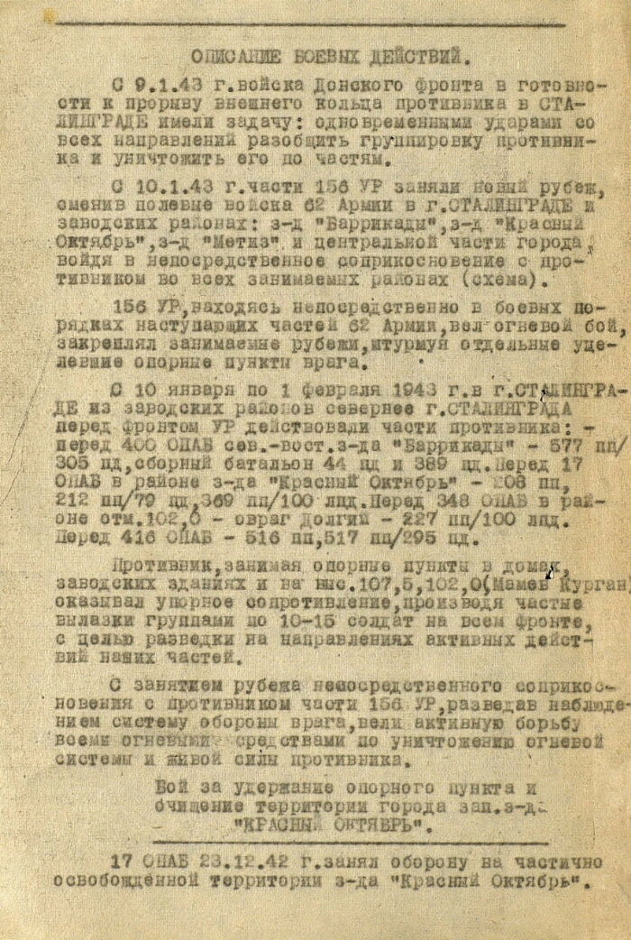 | Заголовок | Описание боевых действий 156-го укрепленного района в период с 21 октября 1942 г. по 2 февраля 1943 г. (с приложением карты) |