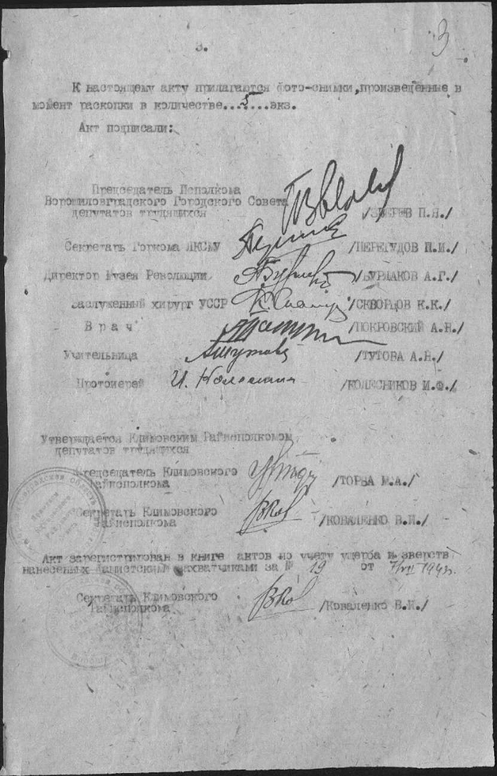 Акт о злодеяниях немецко-фашистских оккупантов в г. Ворошиловграде |