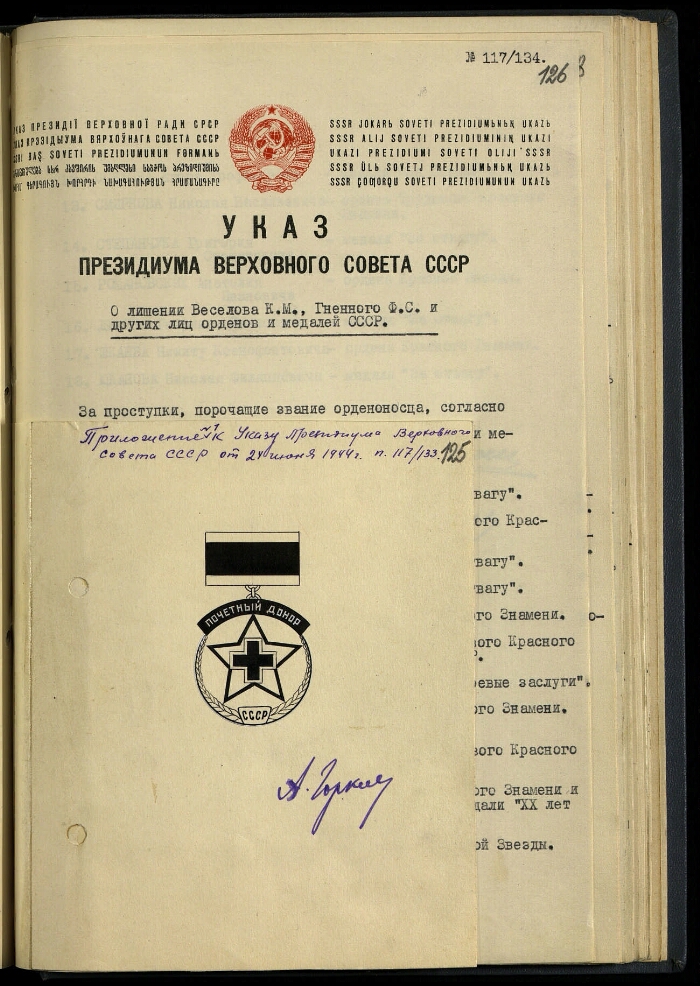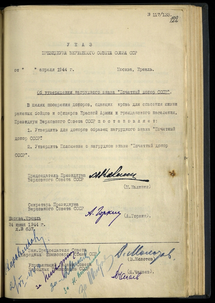 | Заголовок | Указ Президиума Верховного совета СССР "Об утверждении нагрудного знака “Почетный донор СССР”" |
