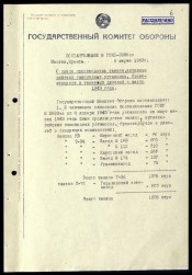 | Заголовок | Постановление ГКО СССР № 2985 сс о плане производства танков, артиллерийских самоходных установок, бронекорпусов и танковых дизелей в марте 1943 г., с приложением докладной записки Зальцмана И. М., Акопова С. А. Сталину И. В., Молотову В. М. |