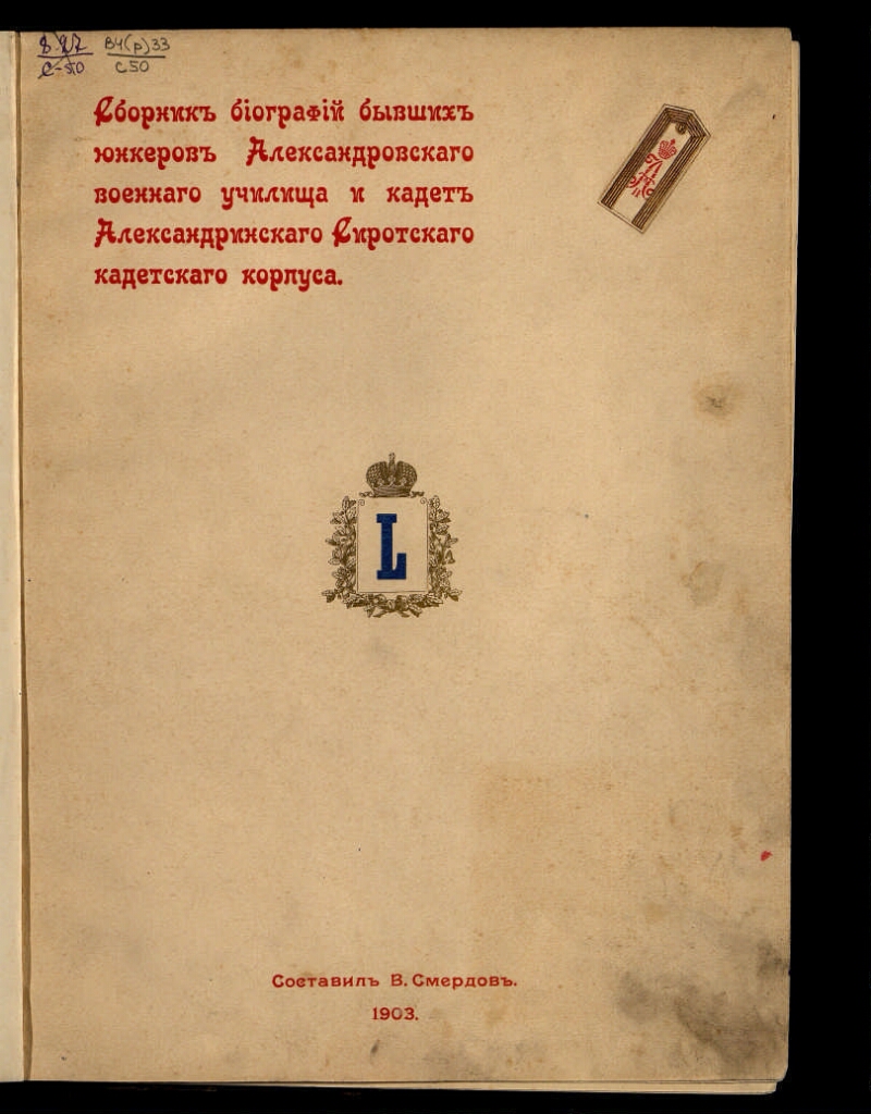 Сборник биографий бывших юнкеров Александровского военного училища и кадет Александринского сиротского кадетского корпуса |