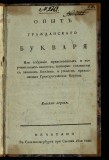 Опыт гражданского букваря, или Собрание нравственных и поучительных законов, которые соглашены с Законом Божиим и учением православные грекороссийские церкви. - Санкт-Петербург : [Б. и.], 1812-. - 12,5 х 20 см. -