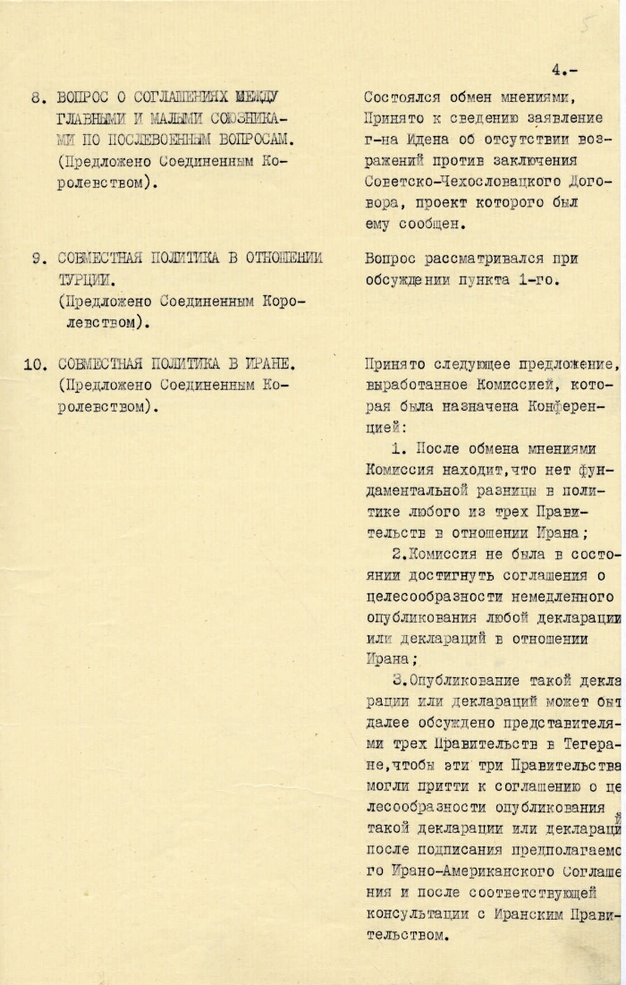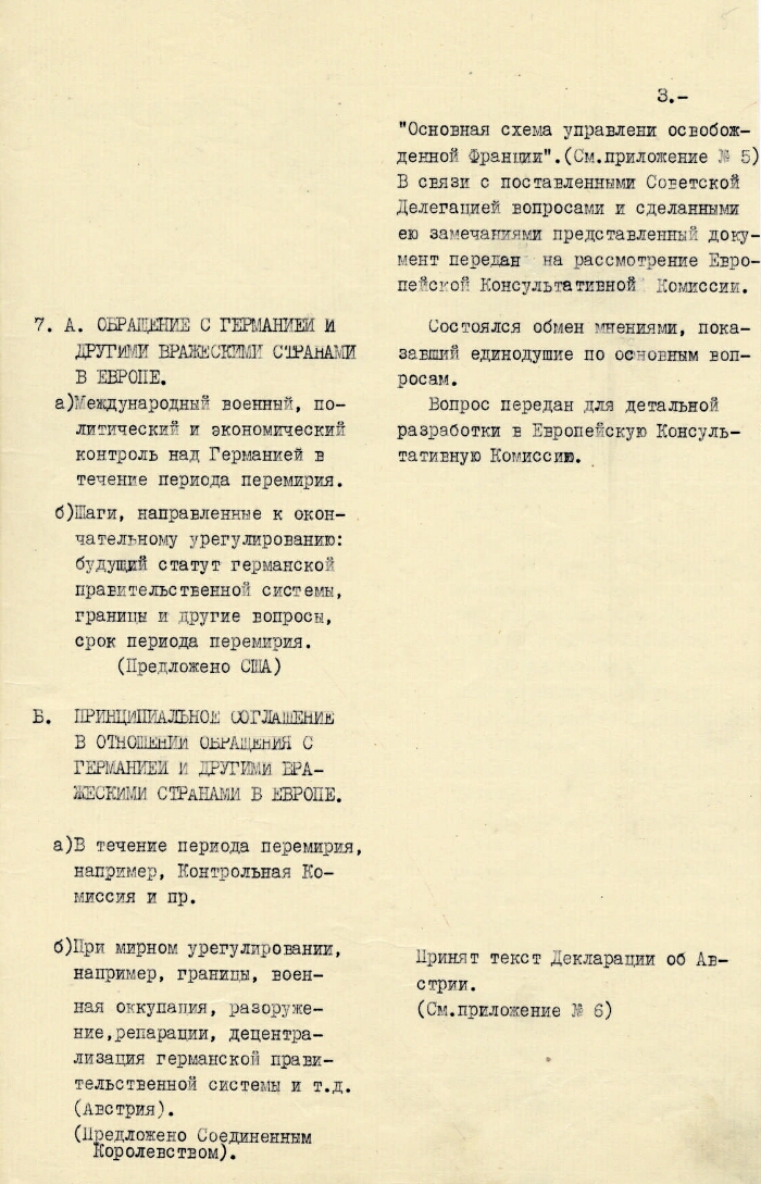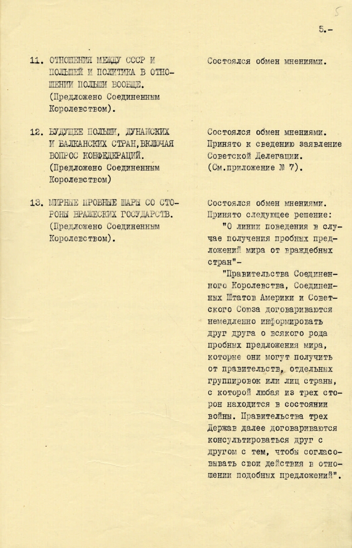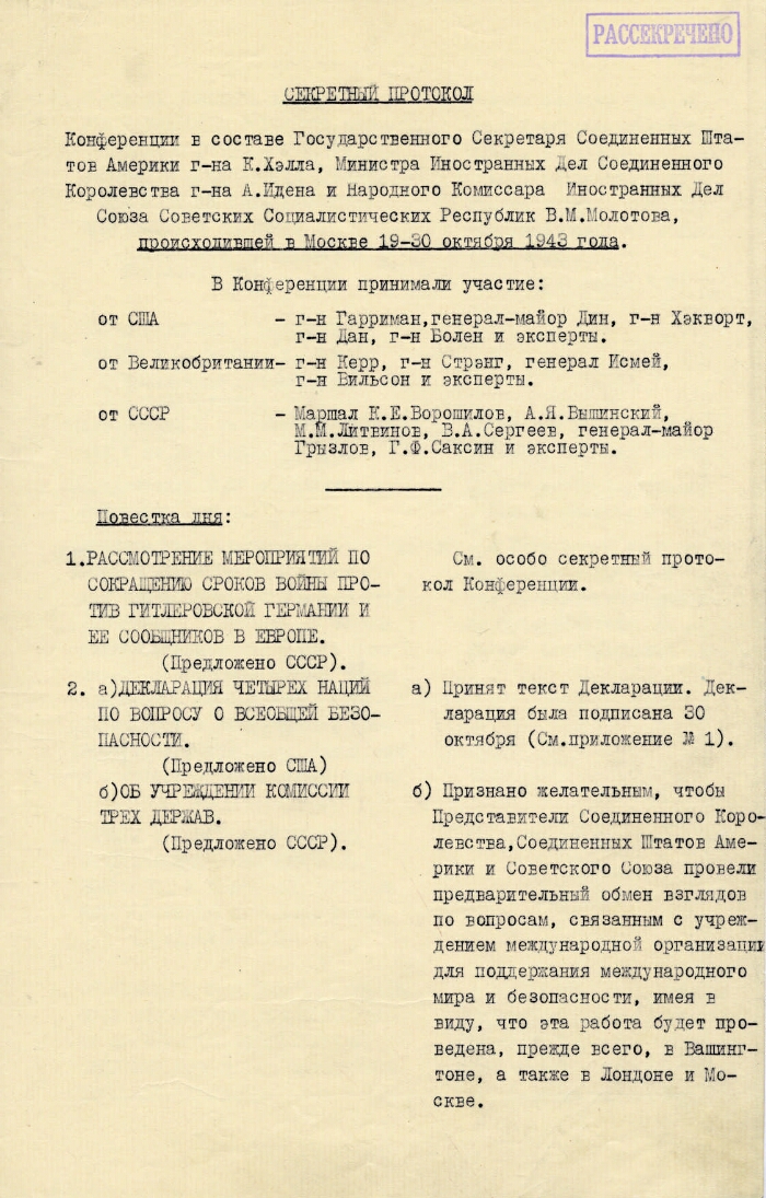 Секретный протокол Московской конференции министров иностранных дел СССР, США и Великобритании 19-30 октября 1943 г.