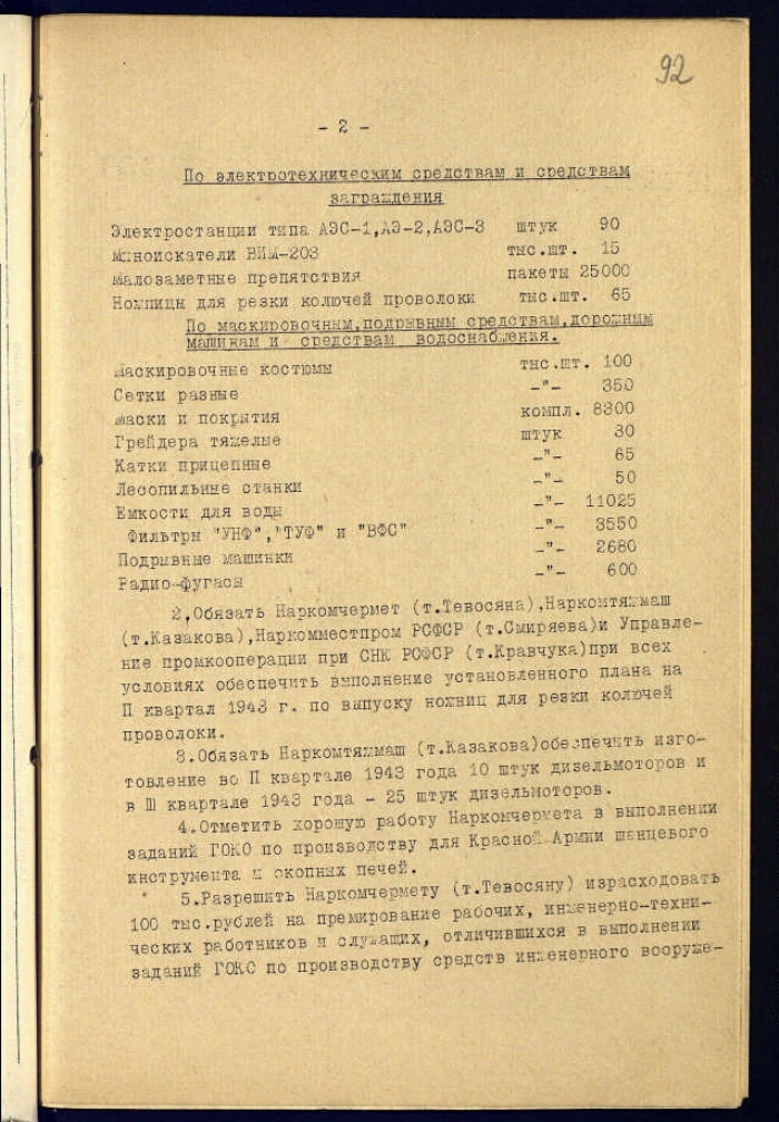 Заголовок | Постановление ГКО СССР № 3390 сс о производстве и поставке Наркомату обороны, Наркомату военно-морского флота и войскам Наркомата внутренних дел средств инженерного вооружения во 2 квартале 1943 г., с приложением ведомостей материалов и докладной записки Косыгина А. Н., Воробьева М. П. Сталину И. В., Молотову В. М. |