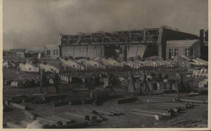 | Заголовок | На вражеском аэродроме, захваченном советскими войсками в районе г. Граудениц. 2-й Белорусский фронт |