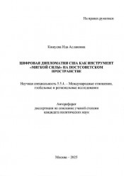 Цифровая дипломатия США как инструмент "мягкой силы" на постсоветском пространстве : автореферат диссертации на соискание ученой степени кандидата политических наук : научная специальность 5.5.4. - Международные отношения, глобальные и региональные исследования / Кишуева Ида Аслановна ; Российский государственный гуманитарный университет. - Москва, 2025. -46 с. ; 21 см. - Место защиты: Рос. гос. гуманитар. ун-т. - Библиогр.: с. 46 (6 назв.) и в подстроч. примеч.