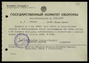 | Заголовок | Распоряжение ГКО СССР № 4865 о продлении срока работы 150 пеших рабочих и 25 возчиков с лошадьми на реконструкции плотины на Белохолуницком заводе Наркомата тяжелого машиностроения |