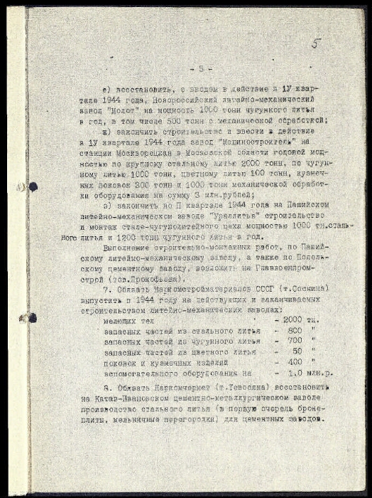 200 | 1# | $a | Постановление ГКО СССР № 5372 о мероприятиях по увеличению в 1944 г. производства цемента заводами Наркомата промышленности строительных материалов, с приложением плана производства цемента на 2 квартал 1944 г.; справок об объеме капитальных ремонтов основных агрегатов цементных заводов и об организационно-технических мероприятиях по приведению в порядок оборудования и хозяйства на важнейших цементных заводах; ведомостей завоза каменного угля и нефтетоплива, отпуска электроэнергии, лимита подачи вагонов, оборудования и материалов; списка электростанций цементных заводов, тарифной сетки и ставок производственных рабочих основных цехов, положения о премировании руководящих, инженерно-технических работников и служащих предприятий цемпромышленности |