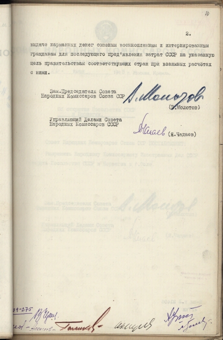 | Заголовок | Постановление № 1474-335с СНК СССР "О выплате карманных денег союзным военнопленным и интернированным гражданам, освобожденным Красной Армией" |