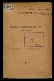 Взгляд на современное состояние океанографии / Ю. Шокальский. - Санкт-Петербург : Тип. М.Д. Ломковского, 1911. -18 с., [1] л. карт. : ил. ; 25,2 х 16,5 см. - Отт. из XLVII т. "Записок по общей географии Императорского Русского географического общества". - Экз.: без тит. л., с рукоп. помет., с дарств. надписью В Библиотеку Николаевской академии.
