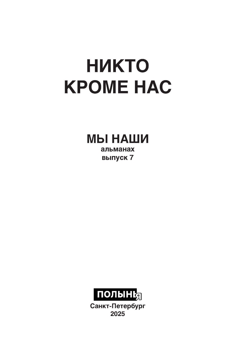 Мы наши : [литературно-художественный альманах] / гл. ред.: Юлия Карасева. - Санкт-Петербург : Полынья, 2024-. - (Книжные проекты альманаха "Полынья"[под ред. Юлии Карасевой])