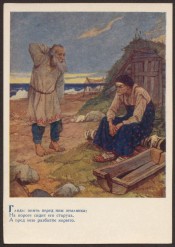 "Глядь: опять перед ним землянка ...". А. С. Пушкин "Сказка о рыбаке и рыбке" [Изоматериал : электронный ресурс] : [открытка] / художник В. А. Серов. - Электронные данные (2 файла : 3,2 МБ). - (Санкт-Петербург: Президентская библиотека имени Б. Н. Ельцина , 2014). - Режим доступа: интернет-портал Президентской библиотеки имени Б. Н. Ельцина. Заглавие с экрана. Электронная репродукция открытого письма: "Глядь: опять перед ним землянка ...". А. С. Пушкин "Сказка о рыбаке и рыбке" [Изоматериал] / художник В. А. Серов. Изогиз, 1955 (Ленинград: 21-я тип. им. Ивана Федорова). 1 открытка : цветной офсет. М-17191. 20 коп. Тираж 75 000 экз. Местонахождение: Детский музей открытки, Санкт-Петербург. Копирование пользователями не разрешается. Иллюстрация к "Сказке о рыбаке и рыбке" А. С. Пушкина, выполненная Народным художником СССР Владимиром Александровичем Серовым