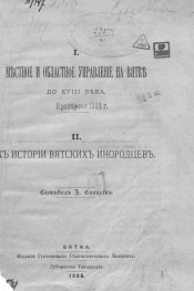 I. Местное и областное управление на Вятке до XVIII века ; II. К истории вятских инородцев / составил А. Спицын. - Вятка : издание Губернского статистического комитета : Губернская типография, 1888. - [2], 66 с.