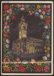 Prag. [Староместская ратуша] [Изоматериал : электронный ресурс] = Praha : [открытка] / P. J. Středočeský. - Электронные данные (2 файла : 3 МБ). - (Санкт-Петербург: Президентская библиотека имени Б. Н. Ельцина , 2014). - Режим доступа: интернет-портал Президентской библиотеки имени Б. Н. Ельцина. Заглавие с экрана. На изображении внизу справа подпись художника. На оборотной стороне открытки рукописный текст синим карандашом. Электронная репродукция открытки: Prag. [Староместская ратуша] [Изоматериал] = Praha / P. J. Středočeský. [Между 1938 и 1944]. 1 открытка : цветной офсет. На лицевой стороне в верхнем левом углу номер чернилами: № 46. Местонахождение: Из частного собрания. Копирование пользователями не разрешается. Открытка Бориса Федоровича Синева от 27.2.45 г. Текст начинается словами: "Жив Здоров Бодр и весел! Сейчас немножко отдыхаем... "