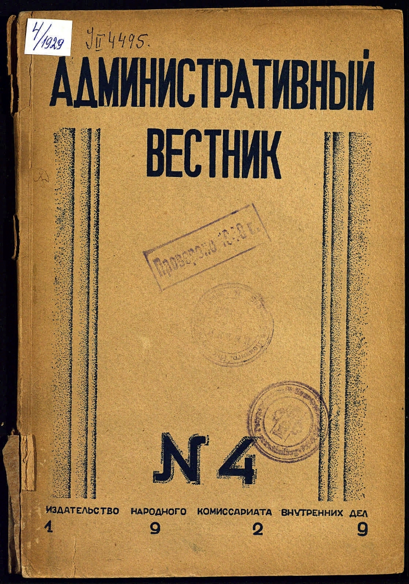 Административный вестник : ежемесячный журнал : орган Народного комиссариата внутренних дел. - Москва : "Заготохоз" милиции Республики , 1922-1930 |