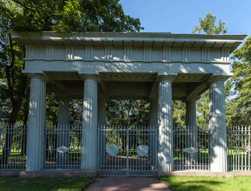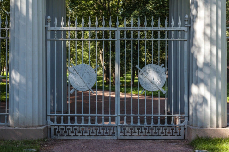 Александровские ворота Екатерининского парка в Царском селе (1817, архитектор В. П. Стасов) [Изображение] : [фотоальбом] / фот. А. М. Мелентьев. - Электрон. дан. (7 файлов : 23 Мбайта). - Санкт-Петербург, август 2012. - Режим доступа: сайт Президентской библиотеки имени Б. Н. Ельцина. Изобразительное электронное издание. Общий вид ворот с оградой Екатерининского парка со стороны улицы ; Общий вид ворот с оградой Екатеринского парка со стороны парка ; Крупный план ворот с надписью "Любезным моим сослуживцам" ; Вид решетки ворот ; Отдельные фрагменты ограды Екатерининского парка ; Ограда Екатерининского парка со стороны улицы