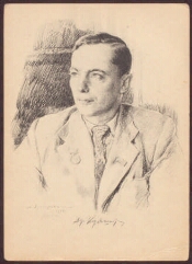 Аркадий Кулешов [Изоматериал : электронный ресурс] : [открытка] / художник А. Яр-Кравченко. - Электронные данные (2 файла : 2,7 МБ). - (Санкт-Петербург: Президентская библиотека имени Б. Н. Ельцина , 2014). - Режим доступа: интернет-портал Президентской библиотеки имени Б. Н. Ельцина. Заглавие с экрана. Электронная репродукция открытки: Аркадий Кулешов [Изоматериал] / художник А. Яр-Кравченко. Издание Государственного литературного музея, 1947. 1 открытка : фотопечать. На оборотной стороне в верхнем правом углу штамп синими чернилами: М-45. Ц. 5 к. Местонахождение: Детский музей открытки, Санкт-Петербург. Копирование пользователями не разрешается. Портрет белорусского поэта Аркадия Александровича Кулешова был исполнен художником-портретистом А. Н. Яр-Кравченко в 1947 году в серии работ «Галерея советских писателей». А. А. Кулешов - мастер эпической формы, яркого метафорического стиля, поэт напряжённой лирической мысли-переживания. Переводчик русской, украинской и зарубежной классической поэзии. Народный поэт Белорусской ССР, Заслуженный работник культуры Украинской ССР