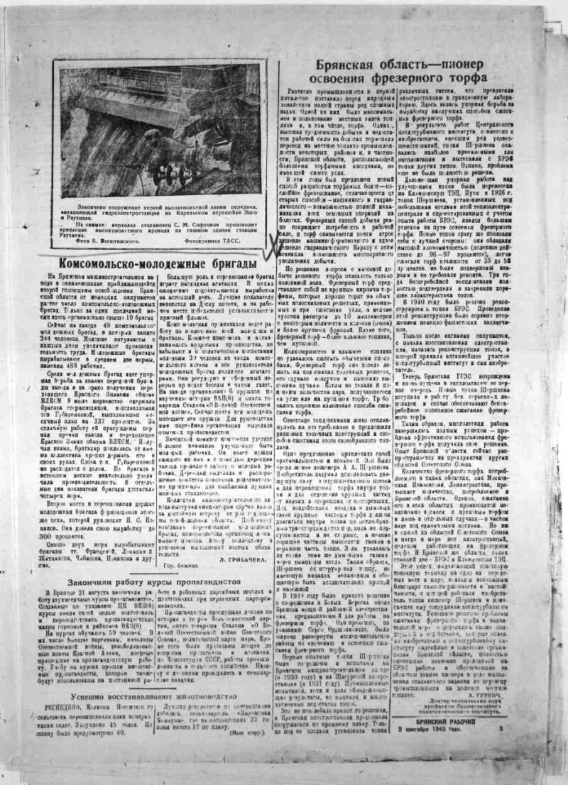 Брянский рабочий : орган Брянского обкома, горкома ВКП(б) и облисполкома. - 1917, № 1 (1 сентября) -. - Брянск, 1917-. - Периодичность различная: 5 раз в неделю (вторник, среда, четверг, пятница, суббота), 4 раза в неделю, 2 раза в неделю, еженедельно по четвергам. - Основана в 1917 г. Первый номер газеты вышел 1(14) сентября 1917 г. Первый номер областной общественно-политической газеты "Брянский рабочий" вышел 1(14) сентября 1917 года. В декабре 1917 г. "Брянский рабочий" объединился с газетой "Известия Брянского Совета рабочих, солдатских и крестьянских депутатов" и стал выходить под названием: "Известия Брянского губкома и губисполкома". В августе 1922 года газета переименовывается вновь в "Брянский рабочий". С 1944 года - орган Брянского областного и городского комитетов ВКП(б) и исполкома областного Совета депутатов трудящихся. С 1980 г. - орган Брянского областного комитета КПСС и Брянского областного Совета народных депутатов. В настоящее время "Брянский рабочий" - региональная информационно-аналитическая газета Брянской области. Учредители: ООО "Редакция газеты "Брянский рабочий", Брянская областная ассоциация промышленных и коммерческих предприятий (работодателей). Издатель: ООО Редакция газеты "Брянский рабочий". Главный редактор: Мельников Владимир Сергеевич. Публикуется оперативная и достоверная информация о жизни города и области, аналитические материалы профессиональных журналистов по проблемам экономики, производства, образования, культуры, медицины. Источники: сайт MediaGid (http://www.mediagid.net/), сайт Путешествие по Брянску (http://puteshestvie32.ru/content/smi-2)