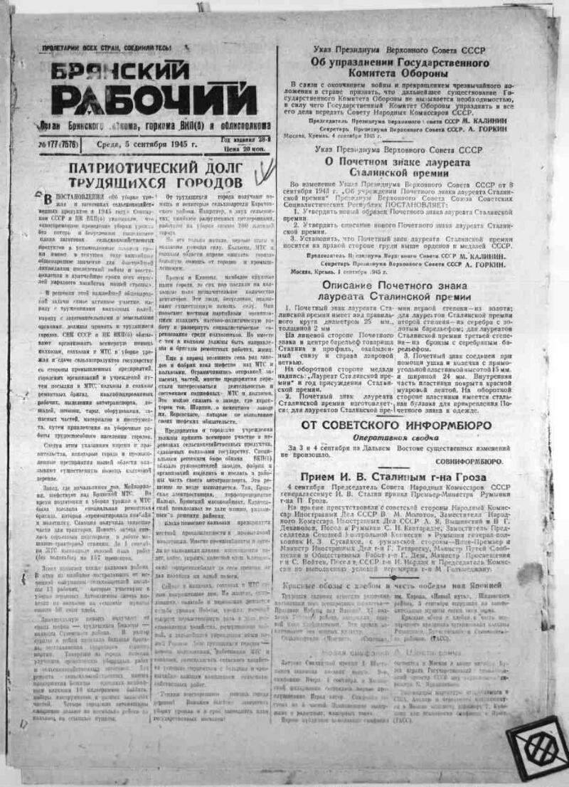 1945, № 177 (7576) (5 сентября). - 1945. - 4 с.