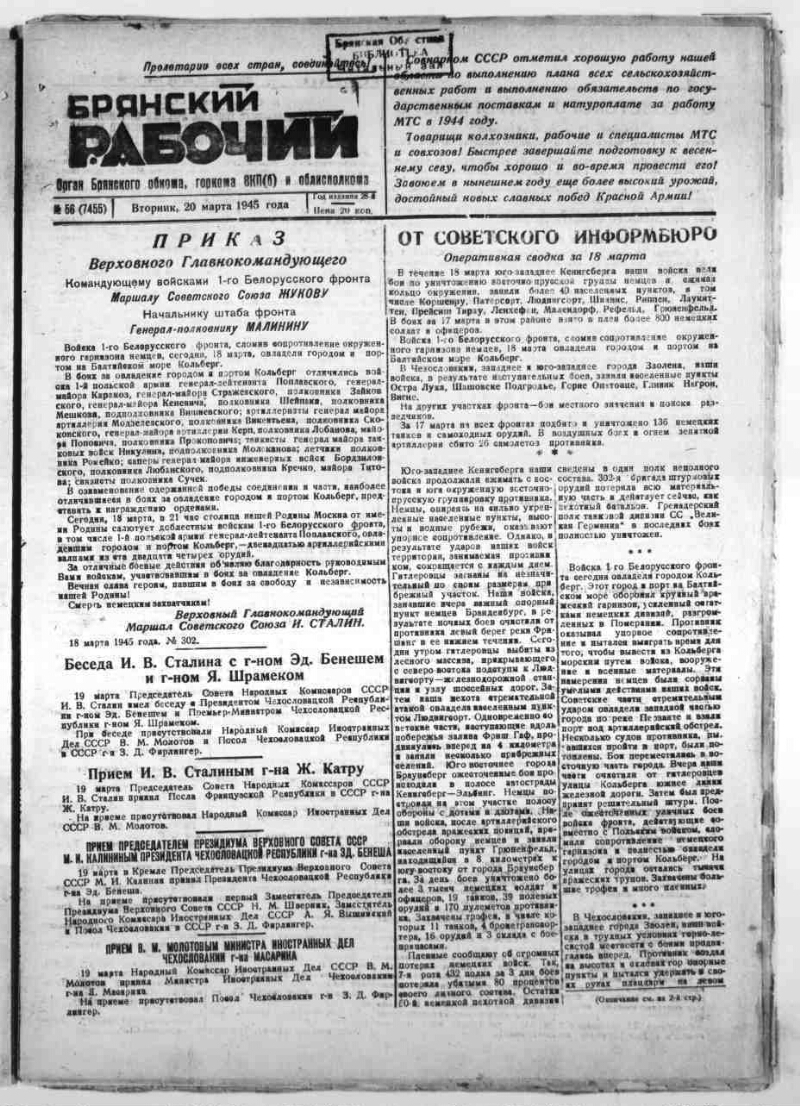 1945, № 56 (7455) (20 марта). - 1945. - 2 с.