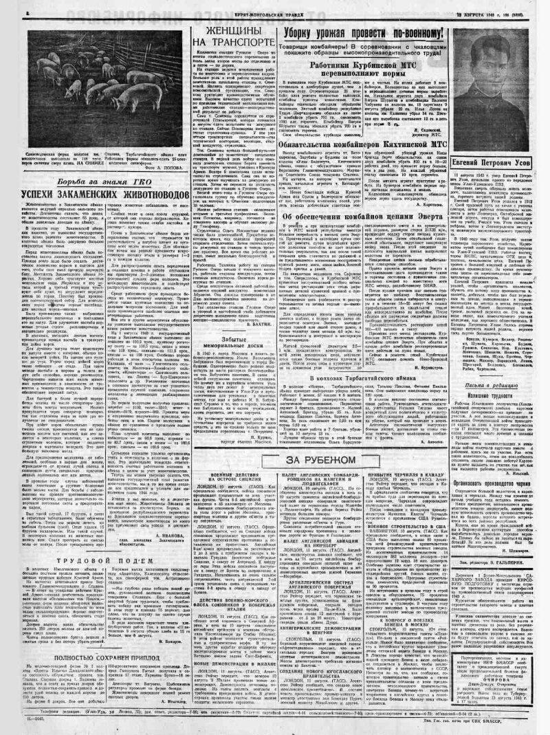 Бурят-Монгольская правда : орган Бурят-Монгольского обкома ВКП(б), Верховного Совета БМАССР и Улан-Удэнского горкома ВКП(б). - Улан-Удэ, 1923-1958. - Заглавия: 1918 (июнь-август) Вестник Советов Прибайкалья ; 1920, апрель - 1923 Рабочий и крестьянин Прибайкалья, Прибайкалье, Красное Прибайкалье, Прибайкальская правда ; 1923, сентябрь - 1958 Бурят-Монгольская правда ; 1958- Правда Бурятии. Подзаг.: 1941 орган Бурят-Монгольского ОК ВКП(б), Верховного Совета БМАССР и Улан-Удэнского горкома ВКП(б) ; 1942-1945 Орган ОК ВКП(б), Верховного Совета БМАССР, Улан-Удэнского ГК ВКП(б). Место издания: 1918 (июнь-август) - 1934 Верхнеудинск. Издательство: 1942-1945 Типография Гос. газетного изд-ва при СНК БМАССР. Также издавалась на бурятском языке: Бурят-Монголой унэн. Основана 7 июня 1918 года