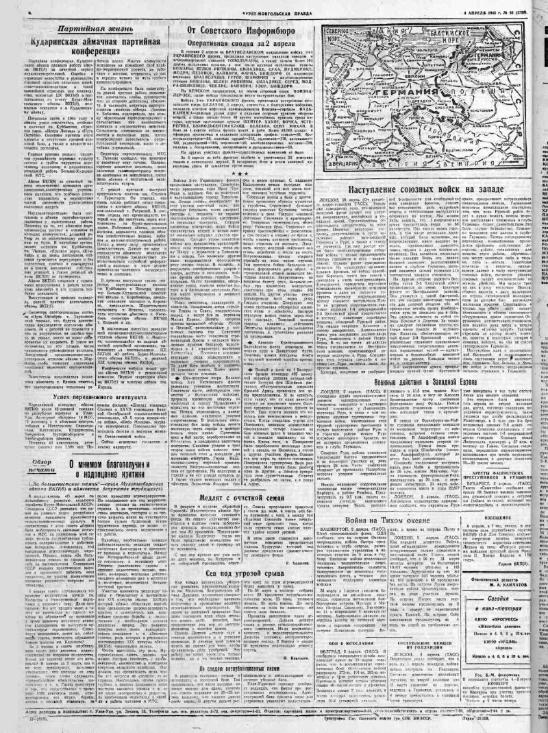 1945, № 65 (5755) (4 апреля). - 1945. - 2 с.