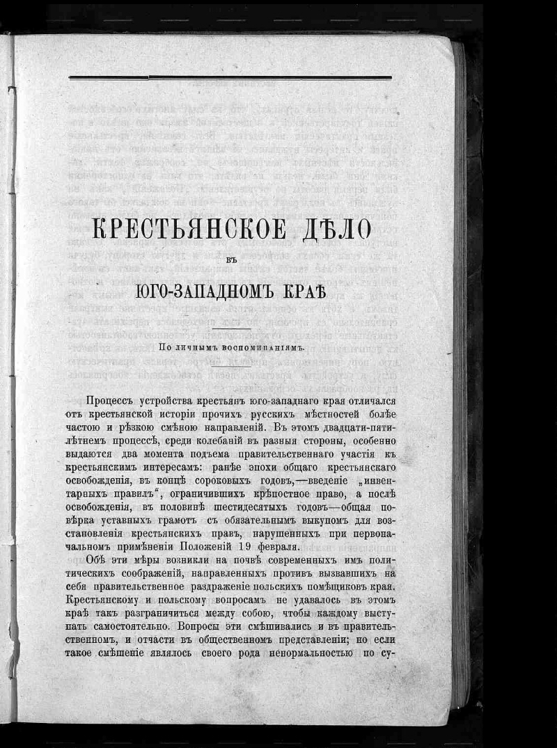 Г. 37 1902, т. 5, [кн. 9/10, сентябрь/октябрь]. - 1902. - 860 с. - На титульном листе валовая нумерация: двести семнадцатый том. Содерж.: Крестьянское дело в юго-западном крае: по личным воспоминаниям: I-IV / Ф. Ф. Воропонов. На золотых приисках в Южной Америке: по личным воспоминаниям: III-IV / Н. С. Кларк. Из истории второй империи: II –V: окончание / Л. З. Слонимский. Хроника . Ученый противник общины / В. В. Внутреннее обозрение. Сельскохозяйственный протекционизм / Вл. Бирюкович. Одна из окраин России: «Очередные вопросы в царстве польском», В. Спасовича и Э. Пильца / К. К. Арсеньев. По поводу македонского вопроса: письмо из Софии / И. К. Социология и историческое познание: I-VIII / Евг. Тарле. Земельная торговля и спекуляция / Ф. Ф. Воропонов. Русский Китай. Наша первая колония на Дальнем Востоке: I-V / А. Хвостов. Хроника. Первый банк для кустарей / В. В. Внутреннее обозрение. Слова, произнесенные в Курске Государем Императором. Труды уездных комитетов по вопросу о нуждах сельскохозяйственной промышленности. Новые законы: об усовершенствовании дворянских учреждений; о дворянских кассах взаимопомощи; о церковных школах; об артелях и др. Учительские курсы и правила о курсах: письмо в редакцию / Вл. Щерба, и другие материалы. - Библиография в примечаниях отдельных статей. - Экземпляр МОГНБ без обложки. - Экземпляр МОГНБ дефектный. Отсутствуют страницы: 763-764.
