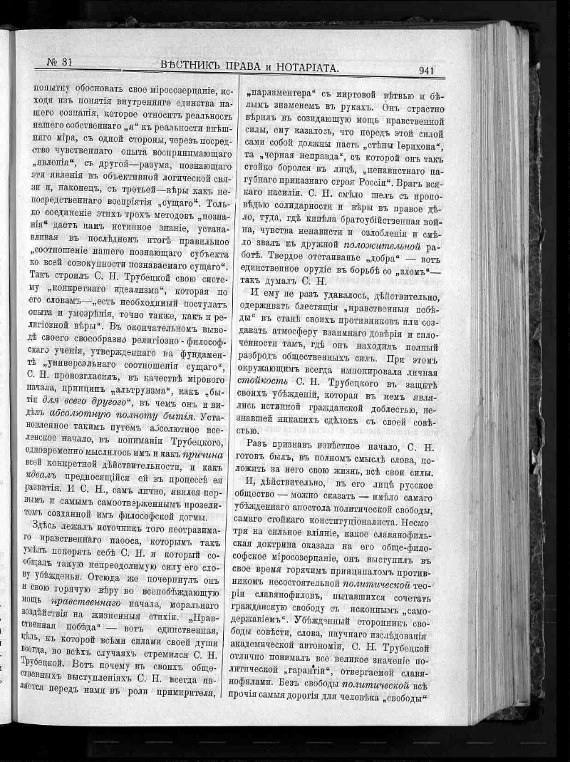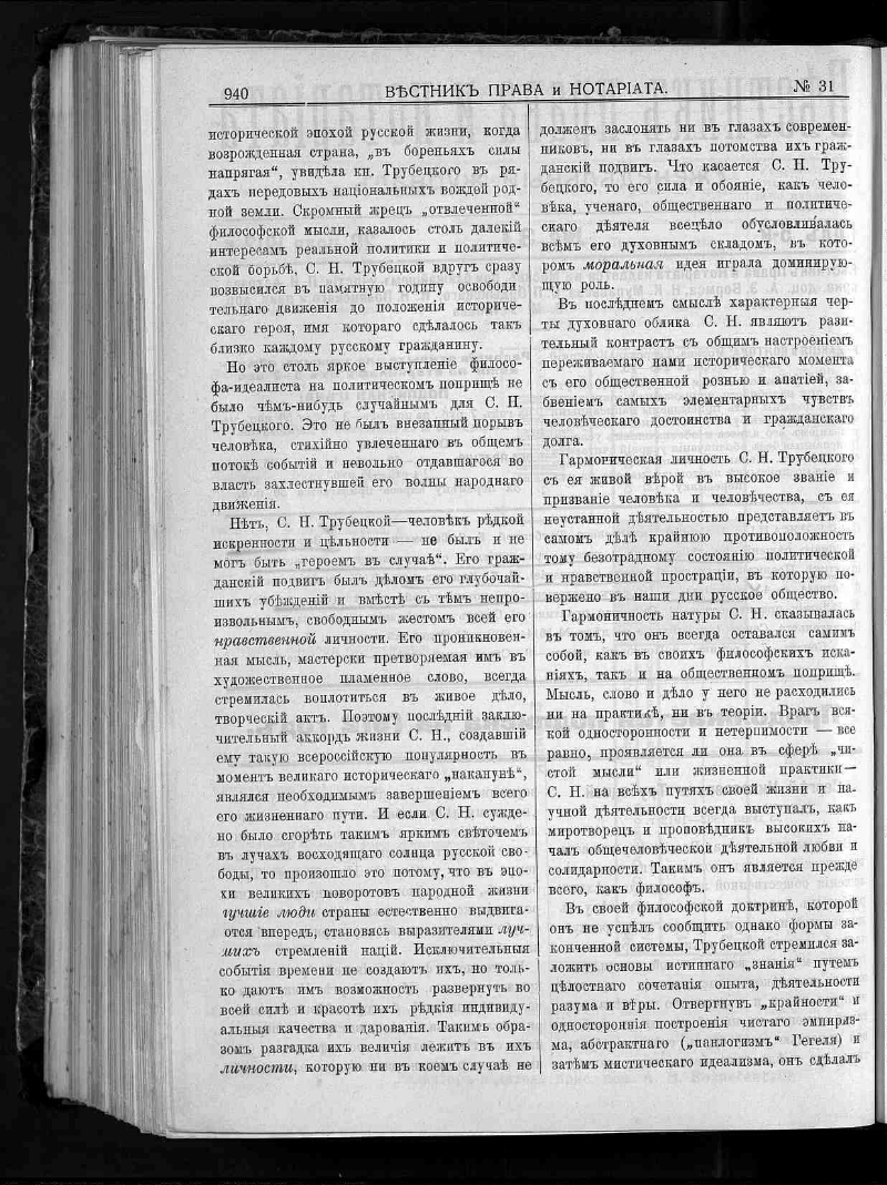 Г. 5 1912, № 31. - [1912]. - С. 939-962. - Содерж.: Сергей Николаевич Трубецкой / [ оч.] Б. И. Сыромятникова. Законная сила судебного решения по действующему уставу гражданского судопроизводства и кассационной практике Правительствующего сената: (окончание) / [соч.] П. П. Короновского. Вниманию юристов / [соч.] П. Астрова. Нотариат. Действия правительства [и др.]