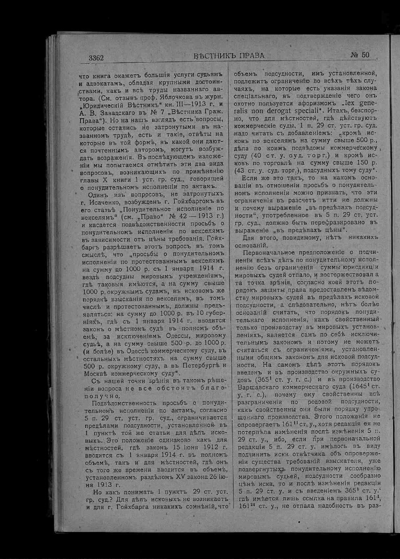 Г. 6 1913, № 50. - 1913. - С. 3361-3396. - Содерж.: Понудительное исполнение по актам / В. Н. Челищев. К введению в действие закона о местном суде / В. А. Завадский. К вопросу о тайне совещания Советов присяжных поверенных / Н. К. Муравьев. Нотариат. Действия Правительства, [и др.]