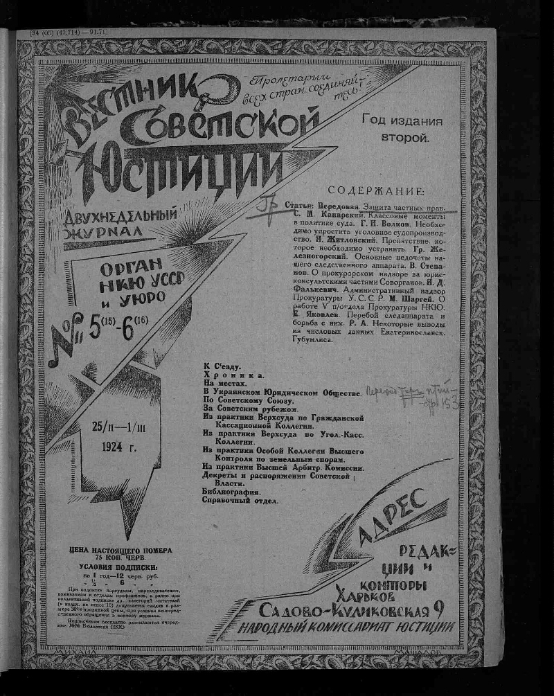 Вестник советской юстиции. 1924, № 5 (15) / 6 (16)