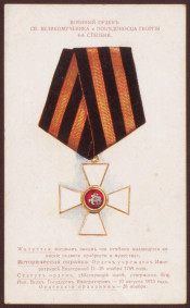 Военный орден Св. Великомученника и Победоносца Георгия 4-й степени [Изоматериал : электронный ресурс] : [открытка]. - Электронные данные (2 файла : 2,09 МБ). - (Санкт-Петербург: Президентская библиотека имени Б. Н. Ельцина , 2014). - Режим доступа: интернет-портал Президентской библиотеки имени Б. Н. Ельцина. Заглавие с экрана. На лицевой стороне под изображением историческая справка и описание ордена . Электронная репродукция открытого письма: Военный орден Св. Великомученника и Победоносца Георгия 4-й степени [Изоматериал]. [Петроград : между 1914 и 1917] (Клише и печать Фришмут). 1 открытка : фотомеханическая печать. Местонахождение: Детский музей открытки, Санкт-Петербург. Копирование пользователями не разрешается