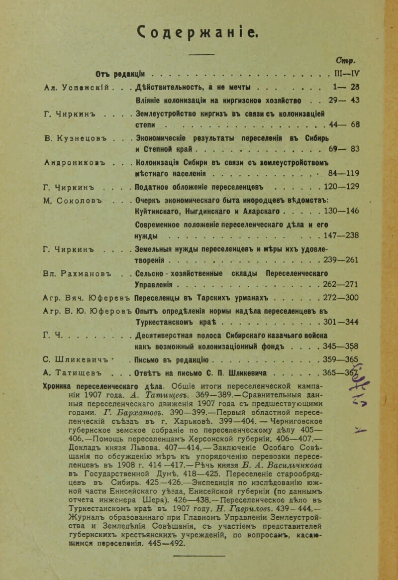 Вопросы колонизации : периодический сборник. - № 1 (1907)-№ 20 (1917). - Санкт-Петербург, 1907-1917. - Подзаг.: № 1 (1907) Сборник статей; № 2 (1907) - № 20 (1917) Периодический сборник. Ред.: № 1 - О. А. Шкапский, № 2-3 - Г. Ф. Чиркин и А. В. Успенский, № 6-19 - Г. Ф. Чиркин и Н. А. Гаврилов, № 20 - Г. Ф. Чиркин. Место изд. № 16-20 Петроград. Изд-во: № 1 издание А. В. Успенского, № 2-13 типография Ф. Вайсберга и П. Гершунина, № 15-17 Екатерининская типография, № 20 Типография М. П. Фроловой (влад. А. Э. Коллинс). Основан в 1907 г.