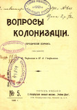 Вопросы колонизации : периодический сборник. - № 1 (1907)-№ 20 (1917). -Санкт-Петербург, 1907-1917. - Подзаг.: № 1 (1907) Сборник статей; № 2 (1907) - № 20 (1917) Периодический сборник. Ред.: № 1 - О. А. Шкапский, № 2-3 - Г. Ф. Чиркин и А. В. Успенский, № 6-19 - Г. Ф. Чиркин и Н. А. Гаврилов, № 20 - Г. Ф. Чиркин. Место изд. № 16-20 Петроград. Изд-во: № 1 издание А. В. Успенского, № 2-13 типография Ф. Вайсберга и П. Гершунина, № 15-17 Екатерининская типография, № 20 Типография М. П. Фроловой (влад. А. Э. Коллинс). Основан в 1907 г.