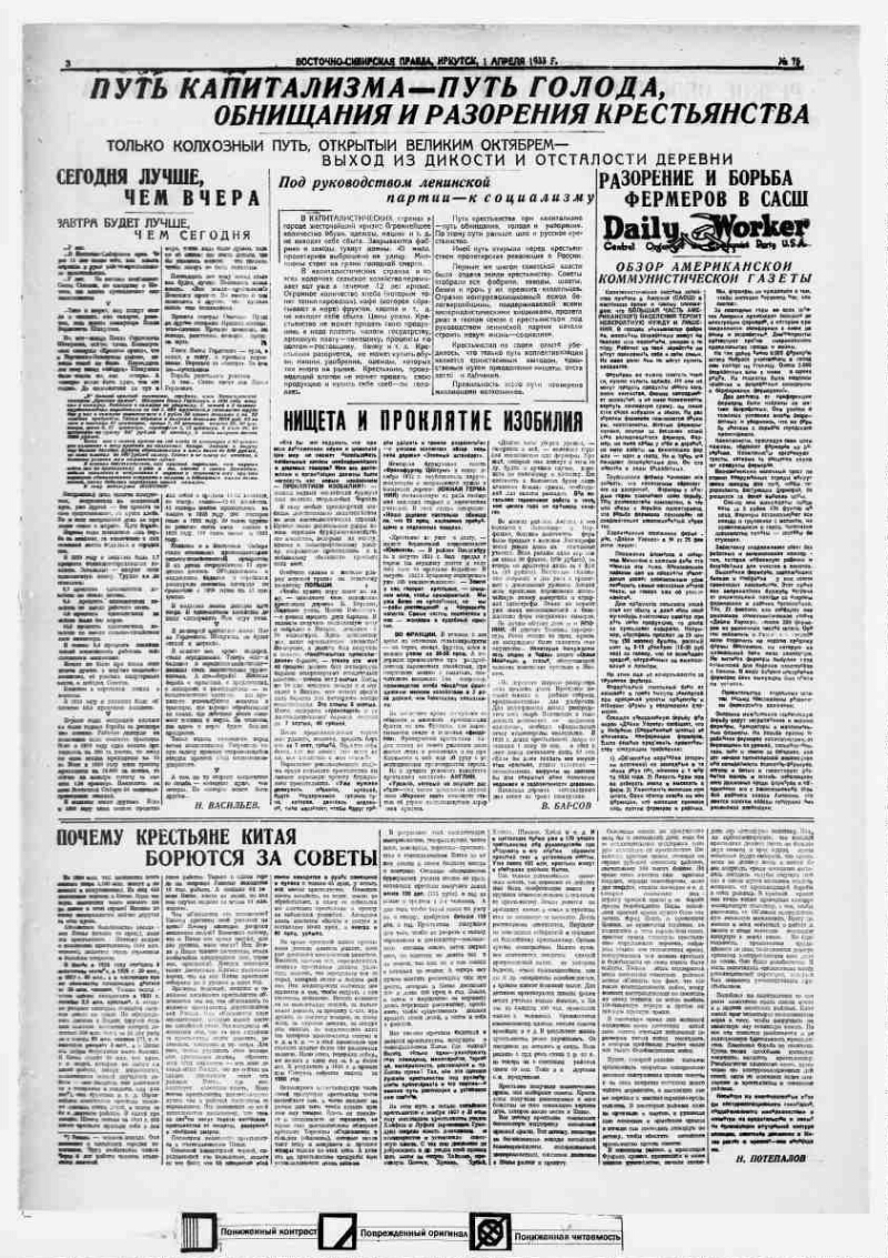 Восточно-Сибирская правда : орган Оргбюро ЦК ВКП(б), Орг. комитета ВЦИКа и Оргбюро ВЦСПС В.-Сибирского края. - Иркутск , 1930-