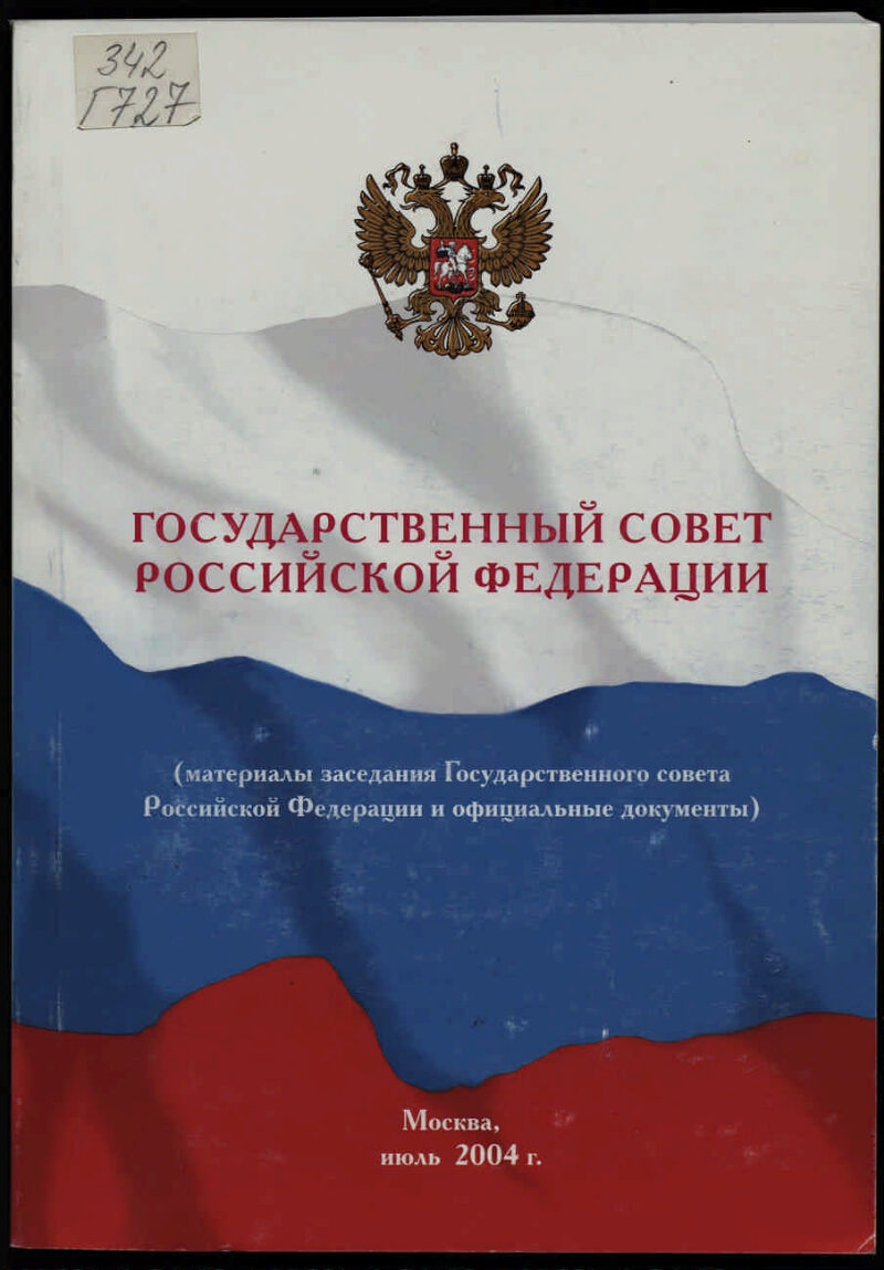Государственный совет Российской Федерации : (материалы заседания Государственного совета Российской Федерации и официальные документы) : [г. Москва, 2 июля 2004 года]. - Москва, июль 2004 г. - 375 с. : табл. ; 21х15 см