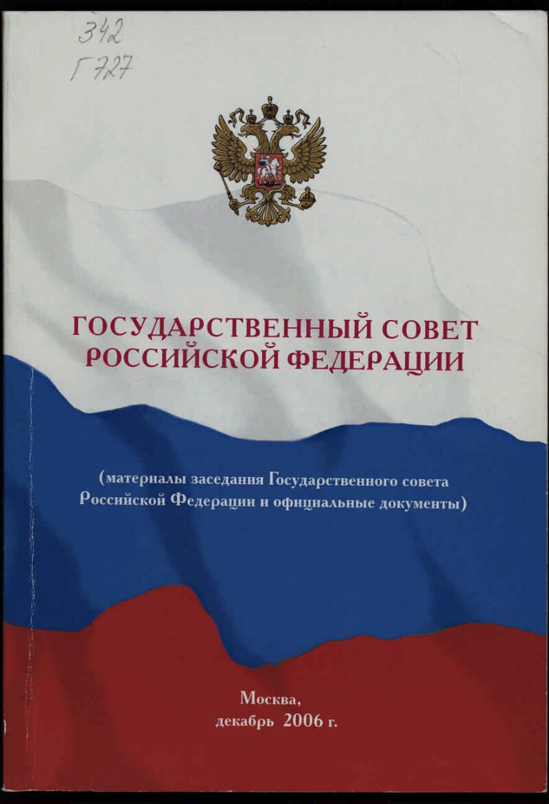 Государственный совет Российской Федерации : (материалы заседания Государственного совета Российской Федерации и официальные документы) : [г. Москва, 26 декабря 2006 года]. - Москва, декабрь 2006 г. - 133 с. : ил.; табл.; диагр. ; 21х15 см